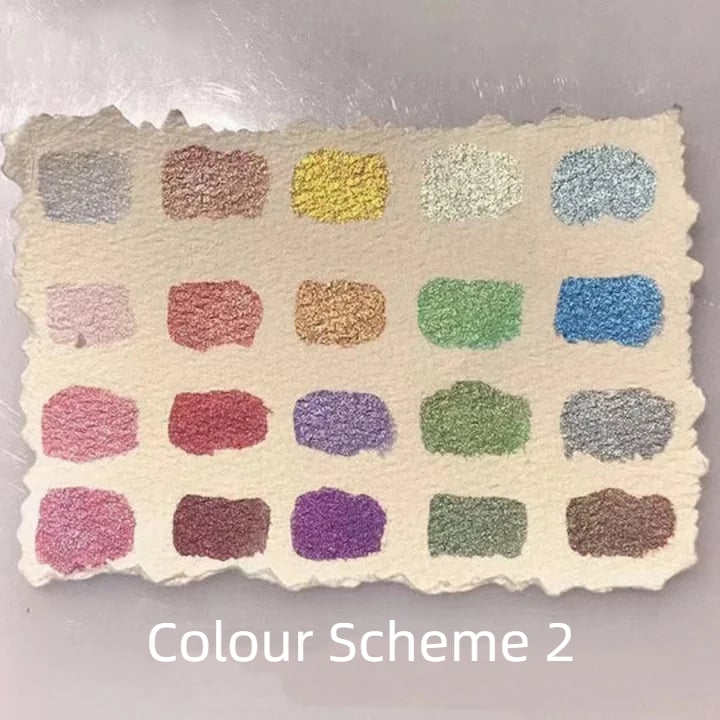 All colors are finely milled with mineral mica pigments as well as natural gum Arabic. Each color is given a shimmering effect, allowing your creations to shine in this watercolor set.
