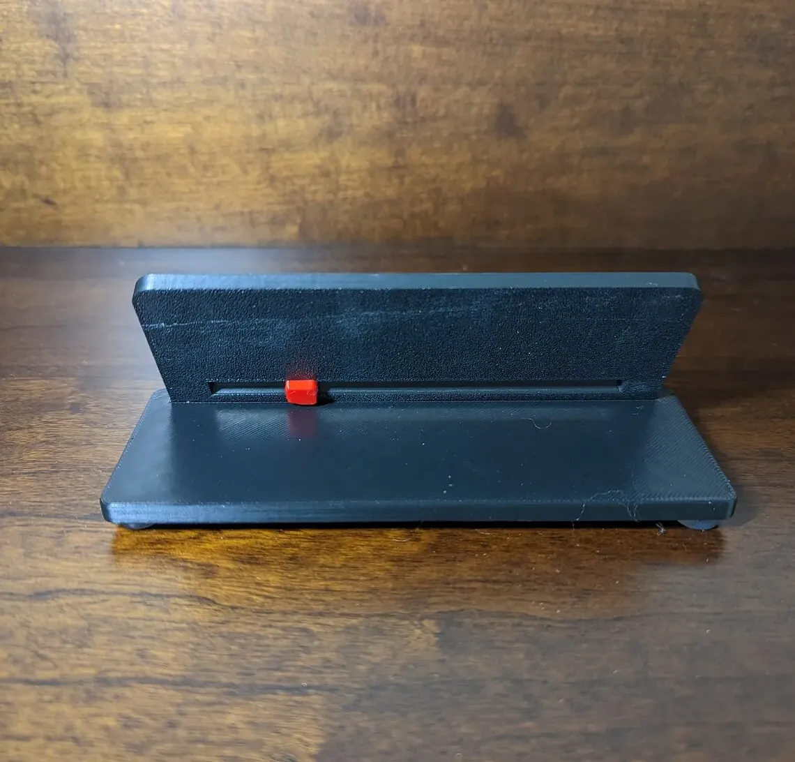 Base is 5.5 inches long and stands at almost 2 inches. Has rubber feet to help with sliding on smooth surfaces.