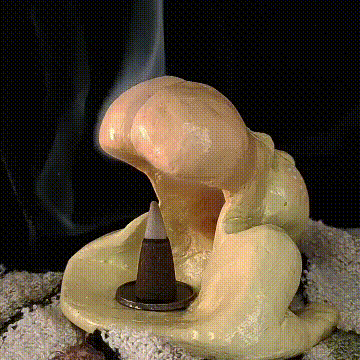 💗 Simply place an incense cone in the opening under his head and watch the fragrant smoke flow gently from his head, creating a humorous and calming effect.