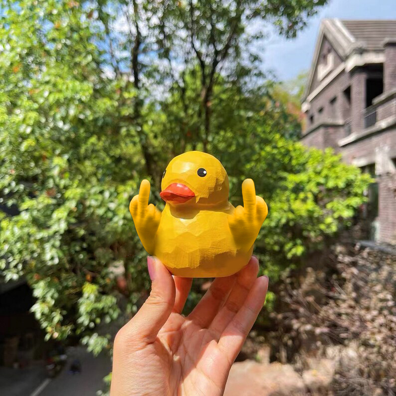 Cheeky Design: This isn't your ordinary duck statue. Our feathered friend here is proudly raising its middle feather in a playful, tongue-in-cheek gesture that adds a dash of irreverent charm to any space.