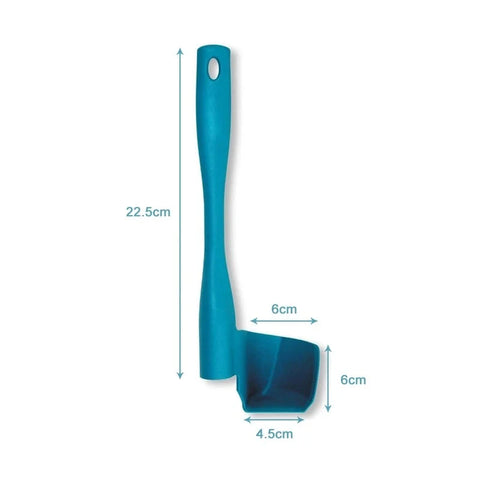 Its curved edge conforms to the curvature of the average bowl, allowing you to easily and completely scoop the contents into the bowl, undeniably ideal for mixing barrels to avoid food waste!