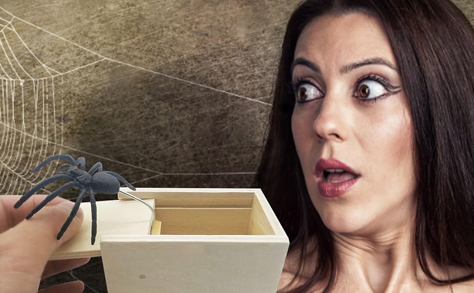 š·ļøSPIDER JUMPING OUT OF BOX: Realistic Rubber Fake Spider With Wiggly Legs and Red Eyes - This little creepy horror stuff will jump out like the scary jack in the box to touch your prank victim's fingers lightly when they can't wait to slide the top cover to open this spider prank box like a gift box. Grab your camera to capture this funny moment when they jump of the thrilling surprise.